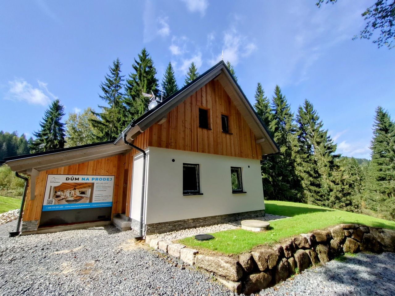 Nabízíme stylový horský dům s garáží a krytou terasou na krásném pozemku s lesním potokem. Dispozice 4+kk, 2 x koupelna, sauna, šatna. Objekt je stavebně připraven pro dvě varianty využití.